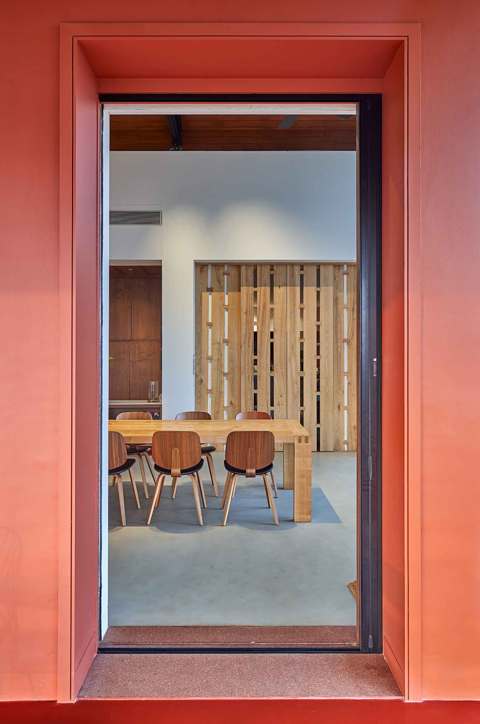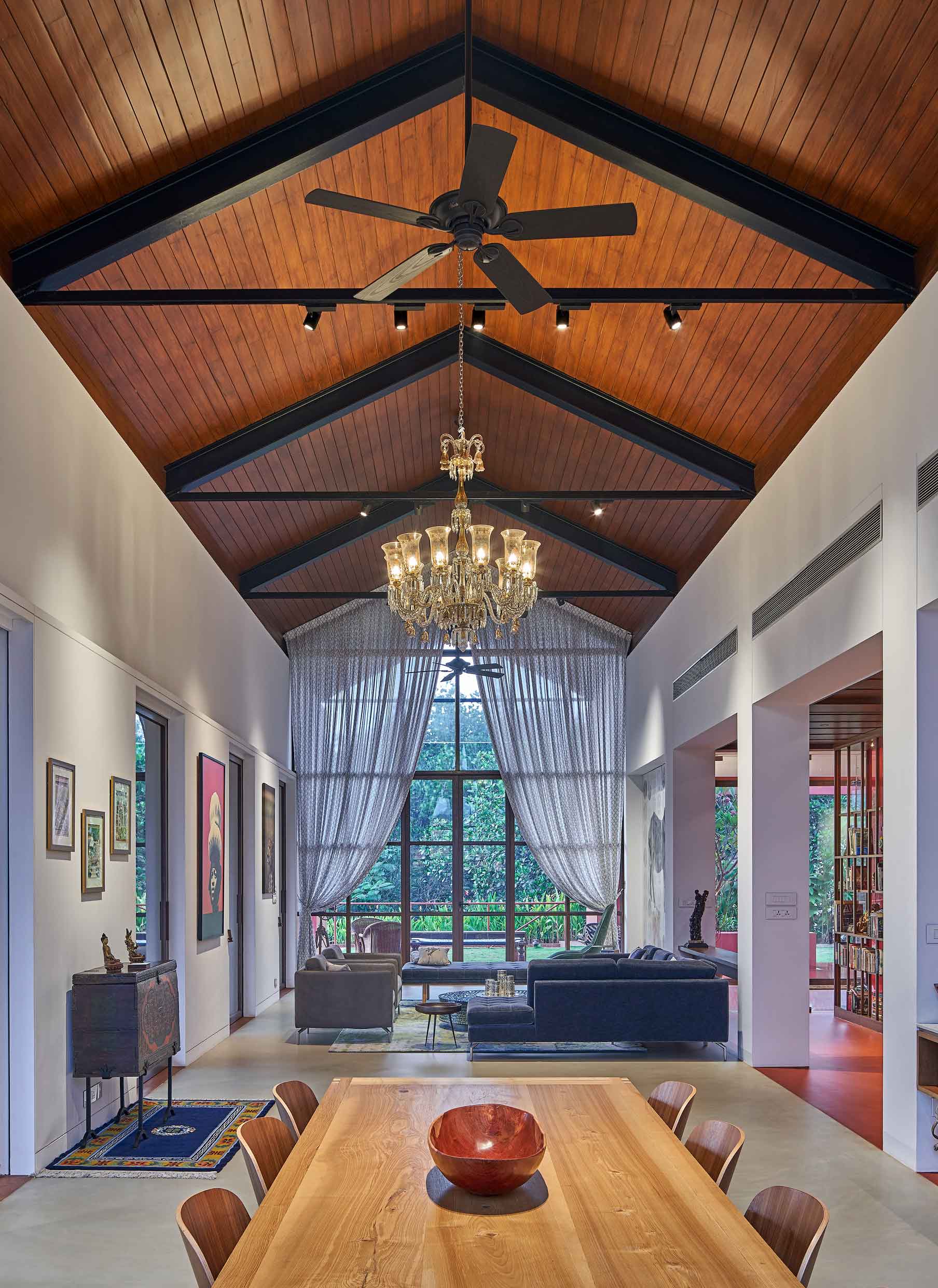 The 3000 x 1200 all ash table is made of selected planks of treated timber. The table is inspired by the traditional joinery techniques in Goa which is now more prominently known through its Japanese Sashimono style. Two beams and a column snugly fit into each other without the use of any ironmongery.